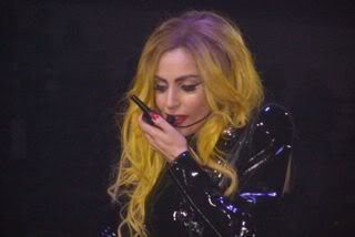 I was introduced to GaGa, wished her a happy birthday and gave her the collage. She said, "thank you...oh my God, you've been (to the Monster Ball) quite a bit." I told her that this night was my 5th. I also showed her the unicorn card and she told me it was beautiful and thanked me.
